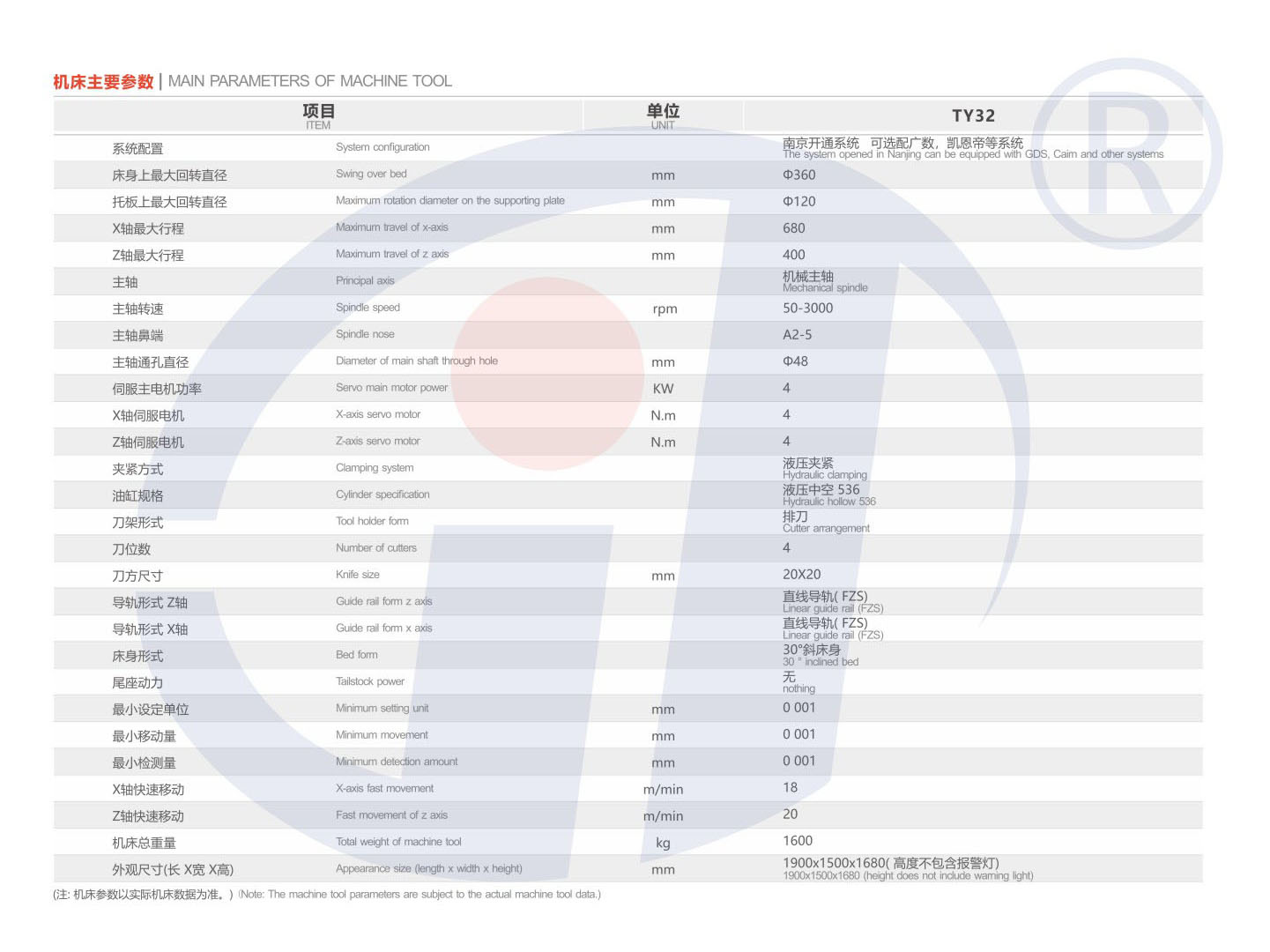 4、X/Z 轴接纳三点定位滚珠丝杠,,,,,,,,定位精度高,,,,,,,,X/Z 轴接纳线性导轨设计,,,,,,,,加 大导轨,,,,,,,,更高的新闻载荷,,,,,,,,提高了机床的刚性。。。。。。。该系列机床整机接纳机、电、液一体化结构,,,,,,,,整体结构紧拼集理,,,,,,,,并接纳先 进的有限元剖析软件对整机举行剖析优化,,,,,,,,使整机性能抵达最优;;;;;;;要害的外购件 都选用国际着名厂家的标准系列产品,,,,,,,,包管机床的精度和可靠性。。。。。。。因此该系列机 床特殊适合汽车工业、摩托车行业、电子、轻工业机械等行业,,,,,,,,对旋转体类零件 举行高效、大批量、高精度加工,,,,,,,,加工精度 IT6 级,,,,,,,,Cp 值大于即是 1.33。。。。。。。