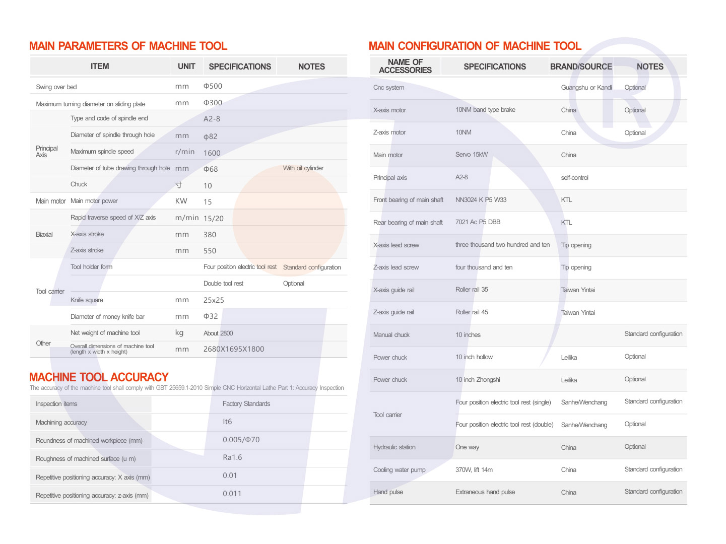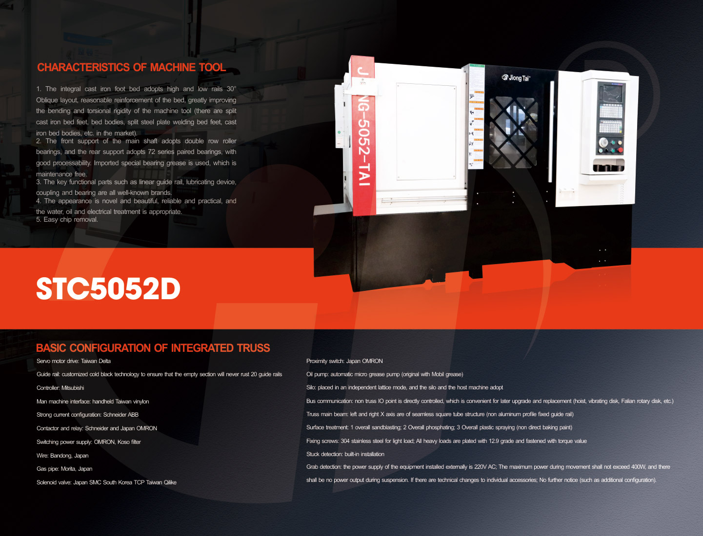 1. The overall cast iron bed bed, the use of high and low rail 30° oblique layout, the bed fabric is reasonable, greatly improving the bending and torsional rigidity of the machine tool (on the market there are split cast iron bed feet, beds, split steel plate welding bed feet, cast iron bed, etc.)