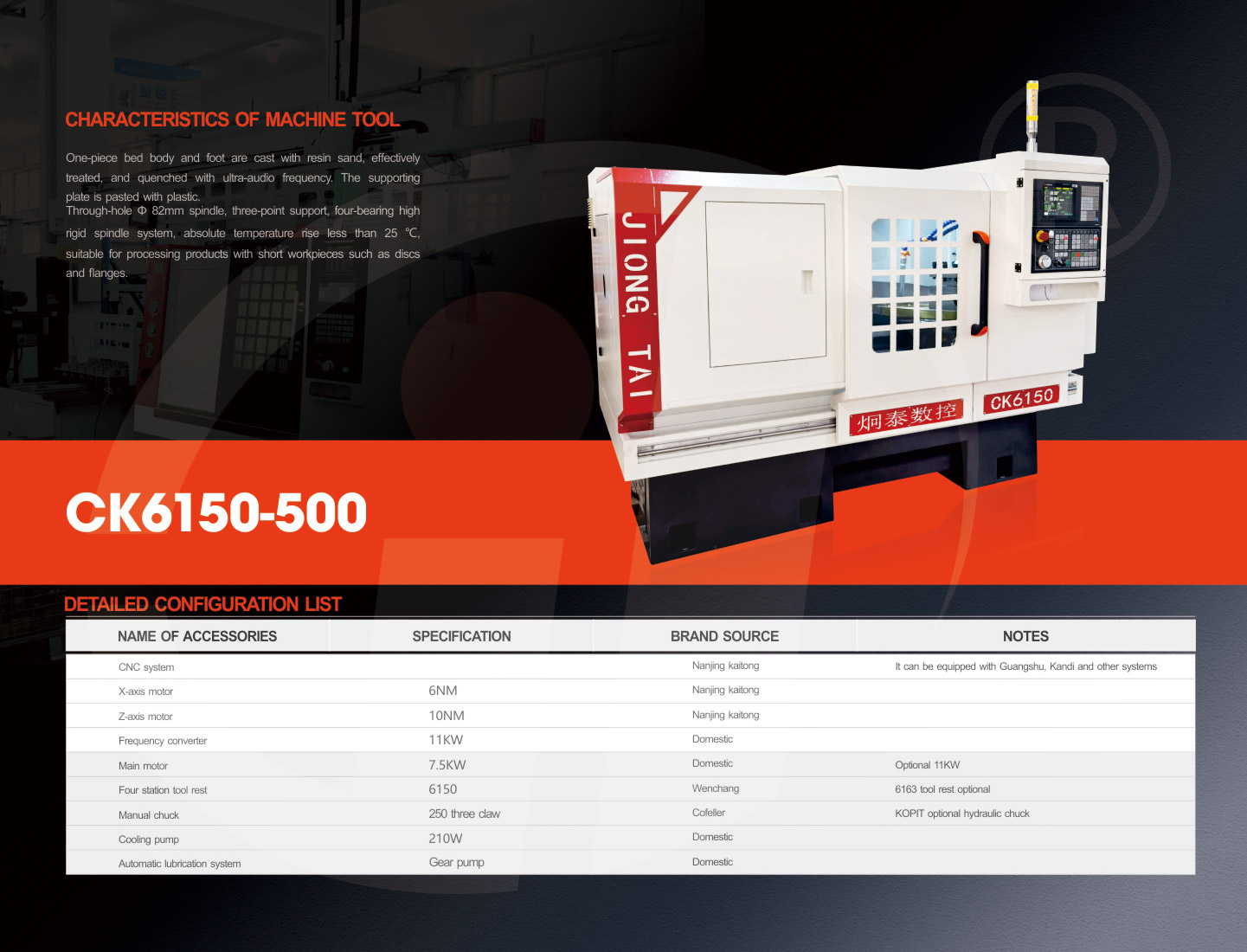 Through hole 82mm spindle, three-point support, four-way bearing high rigidity spindle system absolute temperature rise is less than 25°C, suitable for processing disks, flanges and other short workpiece products.