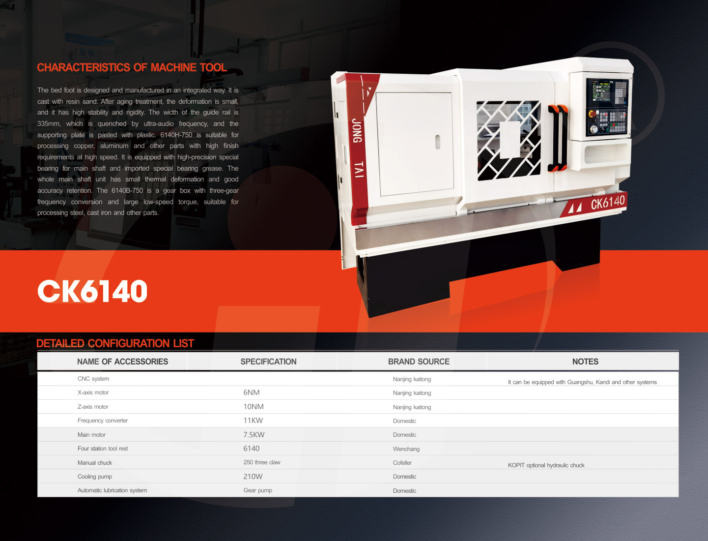 6140H-750 is suitable for high-speed processing of copper, aluminum and other parts with high finish requirements, equipped with high-precision spindle special bearings, imported special bearing grease, the whole spindle unit has small thermal deformation and good accuracy retention.