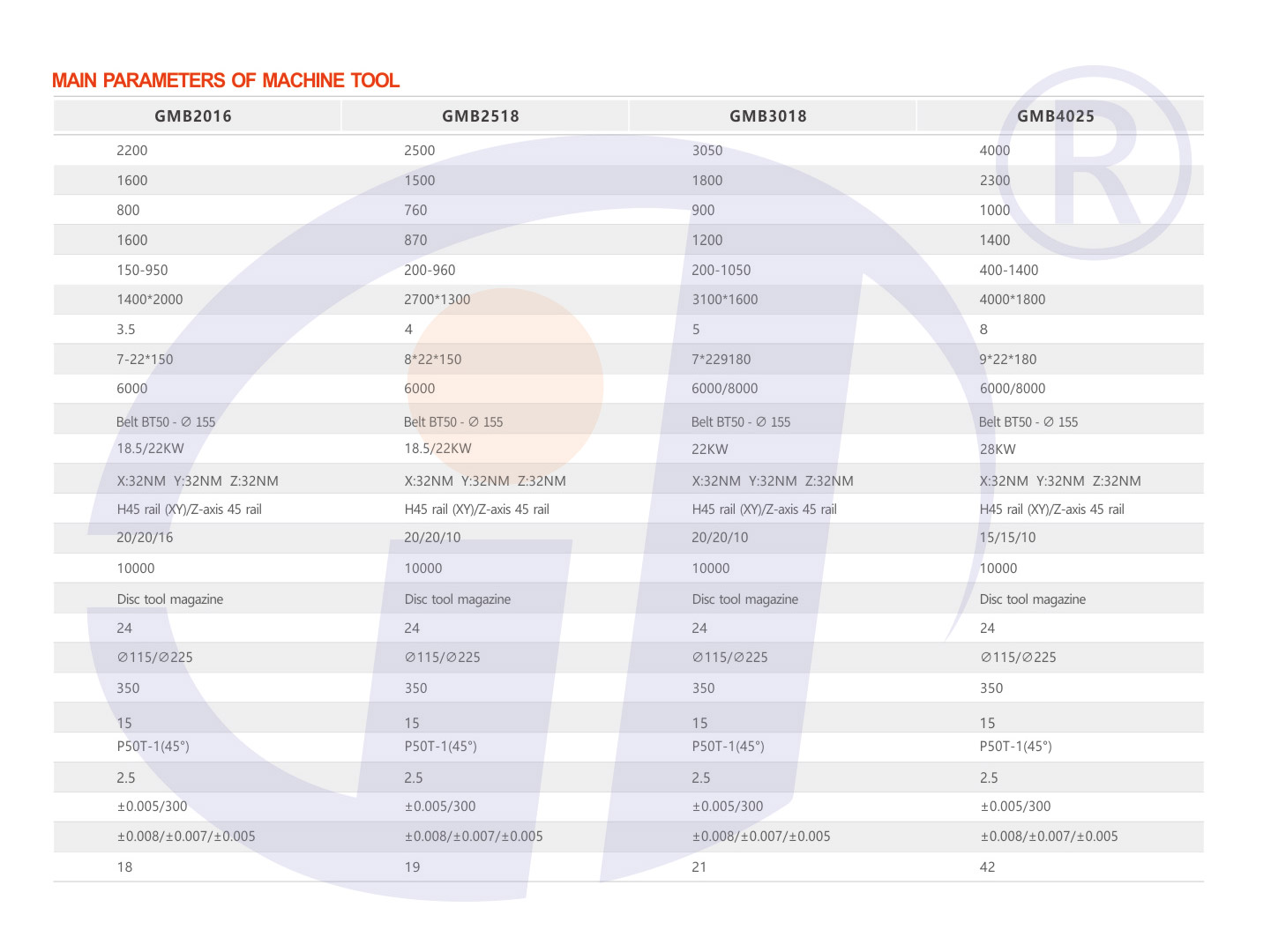2, the main parts of the machine: bed, workbench, column, beam, etc., all using HT250 casting process, reasonable structure, strong applicability, to ensure the long-term operation accuracy and stability of the machine tool.